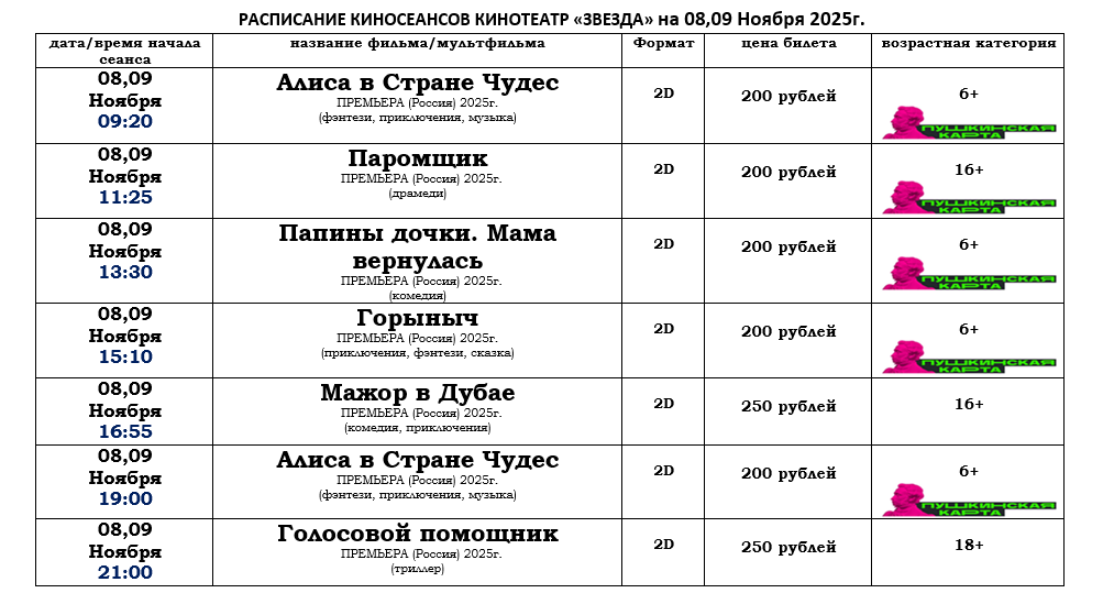 Торопецкий ДК - Расписание кинотеатра «Звезда» 5 - 12 ноября.