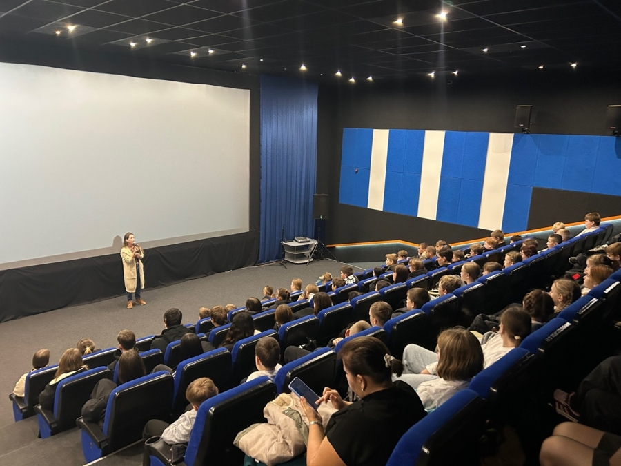 Перед началом показа перед учащимися СОШ №1 и ООШ №3 вступила тележурналист, фотограф, режиссер-документалист, эколог, пресс-секретарь Ассоциации директоров заповедников и национальных парков России Наталия Судец.