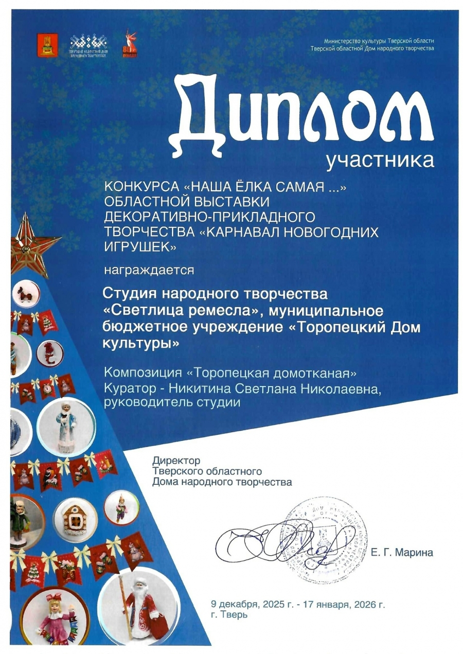 В январе 2026 года в Музейно-выставочном центре им. Л. Чайкиной (г. Тверь) прошла выставка декоративно-прикладного творчества "Карнавал новогодних игрушек". Это экспозиция, где можно было окунуться в атмосферу новогоднего чуда и увидеть уникальные работы мастеров из разных уголков Тверской области.